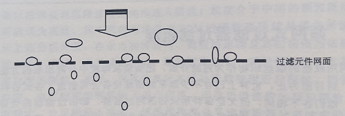 篩網濾水器的過濾機理為表面過濾,即當水從進水口由過濾網外側流向內側,濾網將尺寸大于網眼尺寸的固體懸浮顆粒截留在表面上,而比網眼小的固體顆粒隨水流通過濾網,由出水口排出,如下圖所示。